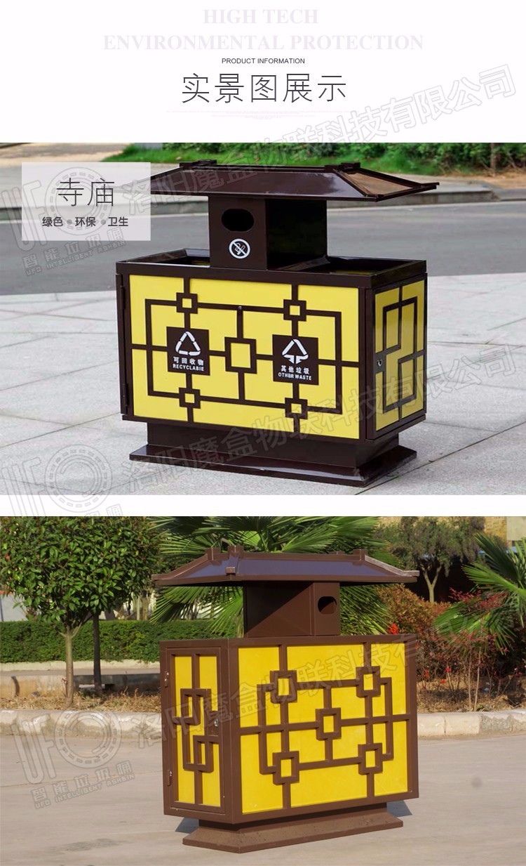現(xiàn)在我國(guó)公園中使用頻率***高的莫過于鋼板垃圾箱。它除了漂亮的外表外,還具有材質(zhì)堅(jiān)硬,不易受損及翹曲變形;完全能適應(yīng)各種惡劣環(huán)境,不易磨損,耐腐濁,不易褪色等優(yōu)點(diǎn)。今天11月內(nèi)蒙古大召寺景區(qū)在我公司訂制仿古鋼板垃圾桶。