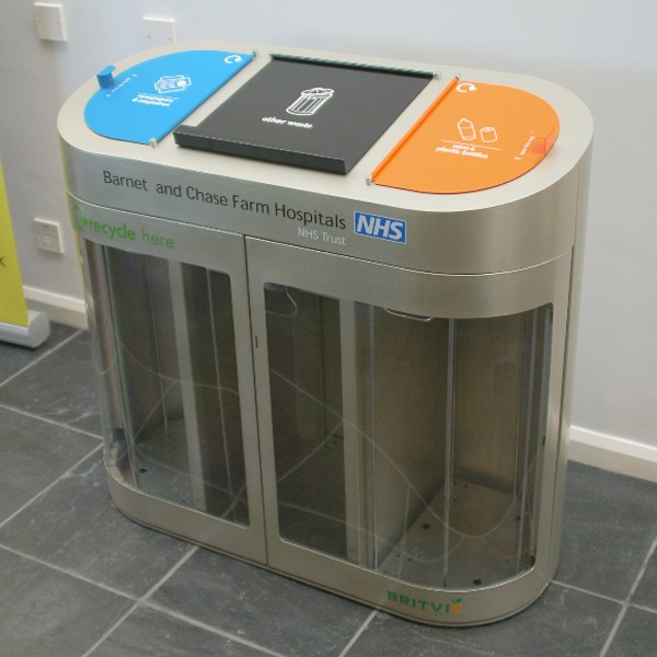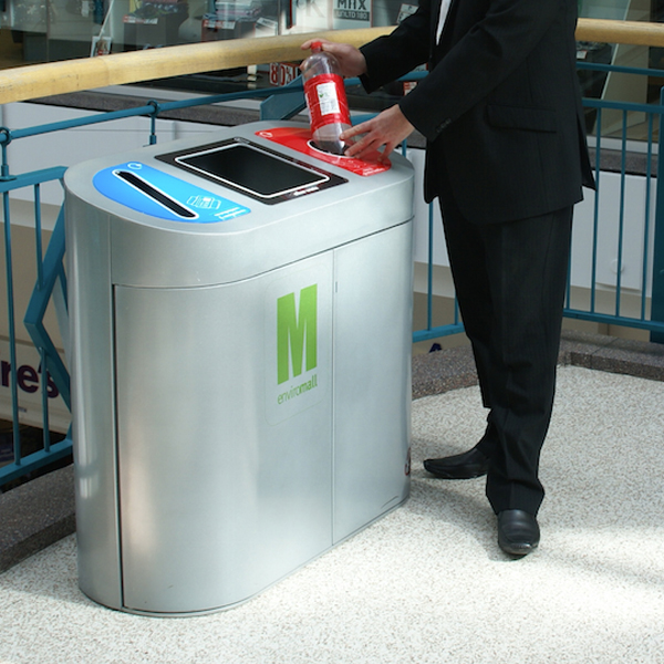 A busy transport hub can collect around 2 tonnes of plastic bottles per month using the Torpedo Triple Recycling Bin.