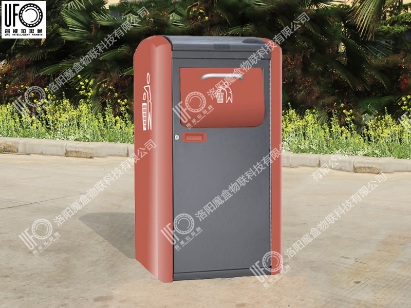 垃圾箱通過不同投放口進(jìn)行垃圾分類引導(dǎo),內(nèi)部設(shè)有壓縮系統(tǒng),用箱頂?shù)奶柲茈姵匕骞╇?可自動(dòng)對投入的垃圾進(jìn)行壓縮。